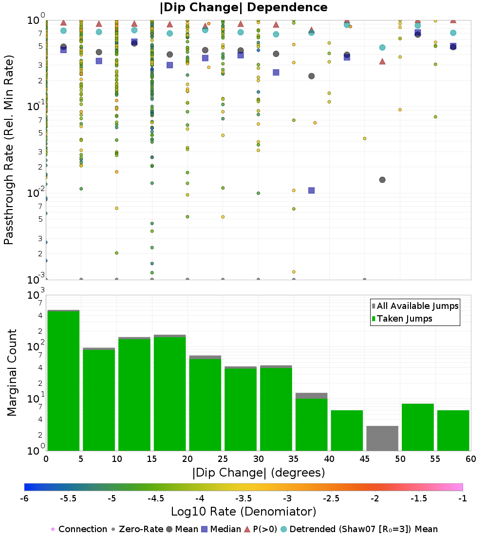 | |Dip Change| (degrees) | |Dip Change| (degrees) (Log10 Rates) |