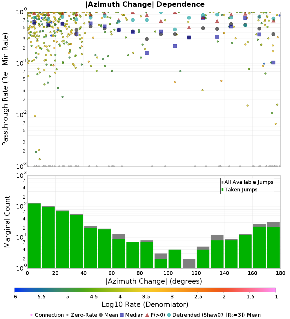 | |Azimuth Change| (degrees) | |Azimuth Change| (degrees) (Log10 Rates) |