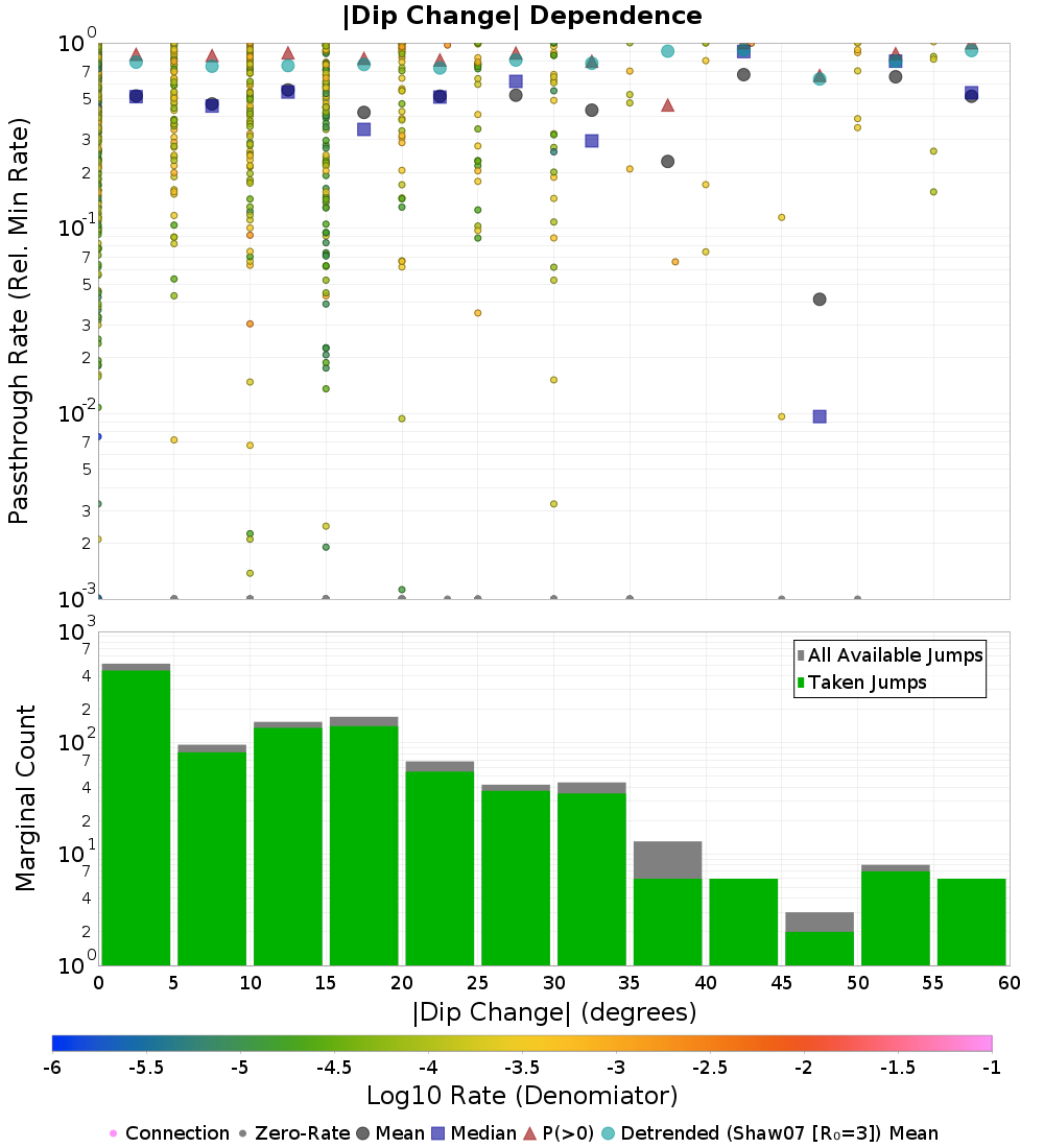 | |Dip Change| (degrees) | |Dip Change| (degrees) (Log10 Rates) |