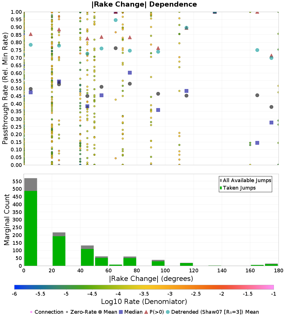 | |Rake Change| (degrees) | |Rake Change| (degrees) (Log10 Rates) |